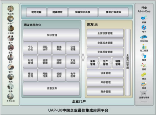 用友U8-OA协同办公管理系统,可把日常业务、事物、协作等信息在企业的各分公司、部门、群组、个人之间进行及时高效、有序可控、全程共享的沟通处理。提供协同工作、公文管理、公共信息、日程/会议管理、常用工具以及系统管理等应用模块。从而达到高效全面的管理效果。